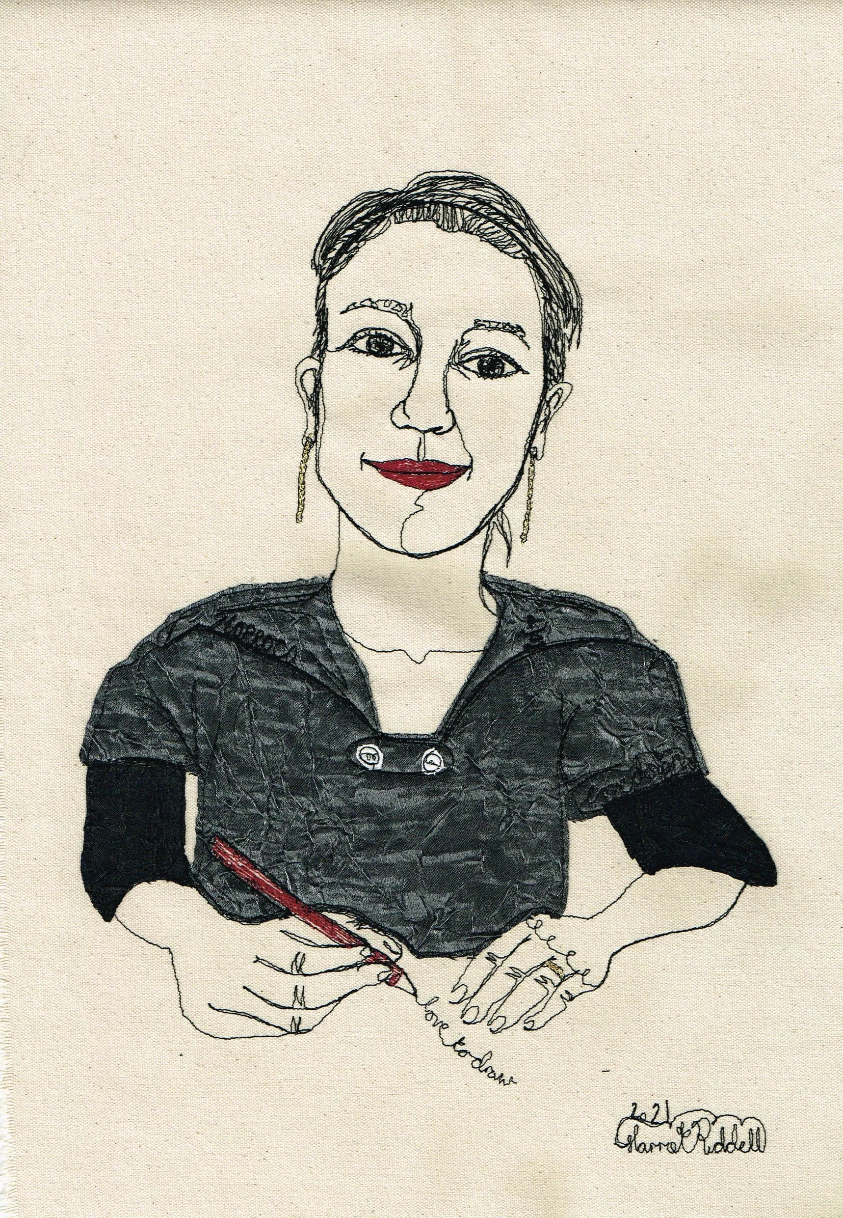 Die Portraits wurden von der Textilkünstlerin Harriet Ridell auf ihrer Bernina-Nähmaschine gestickt.